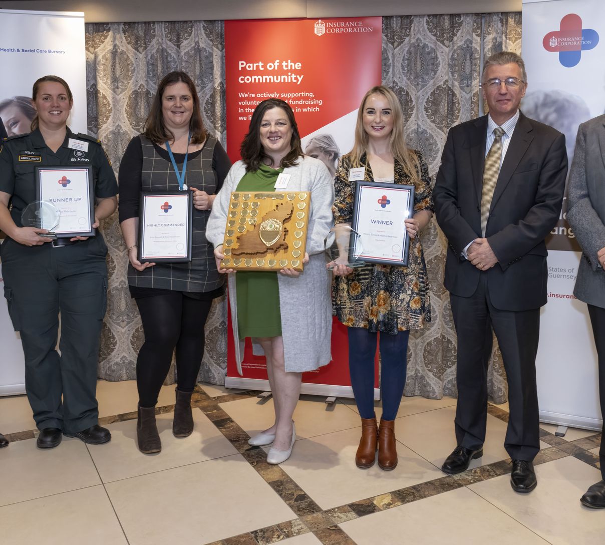 At the awards ceremony, we were delighted to announce that in a joint venture between Insurance Corporation, HSC and St John's Ambulance we would collectively purchase one of the special lifting chairs to be available within the community.